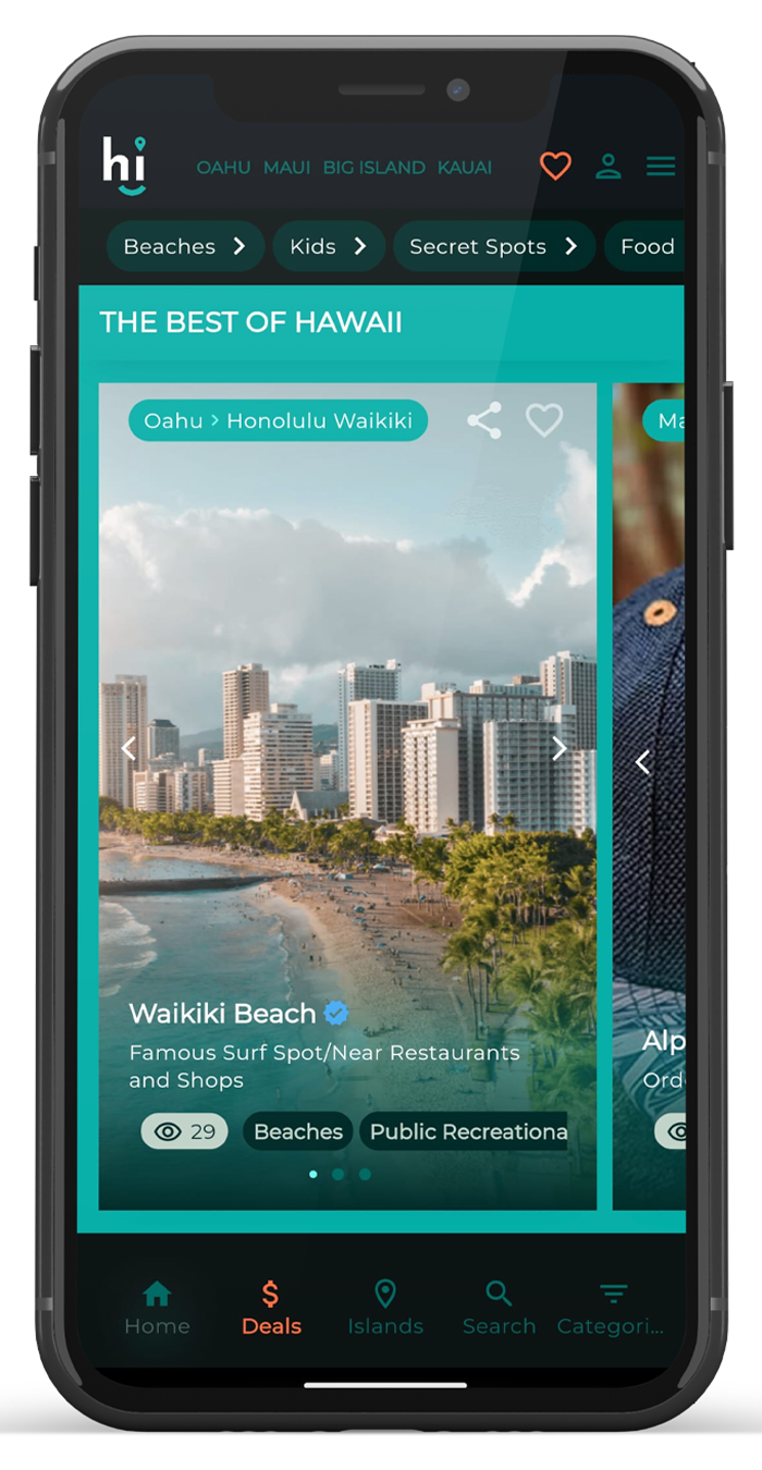 IM IN HAWAII™ is our own proprietary web and mobile application (available on iOS and Android), fully designed and developed in-house by The X Digital. We didn’t just build apps for clients — we built our own production-ready platform that connects users to nearly every beach, public recreation area, and local business across the four major Hawaiian islands. The app includes a powerful business analytics dashboard tracking favorites, map clicks, calls, and website visits, while users can organize and manage their entire Hawaii trip through an integrated itinerary and reminder system. This platform demonstrates our ability to architect, launch, and scale real-world software built on our own custom infrastructure.