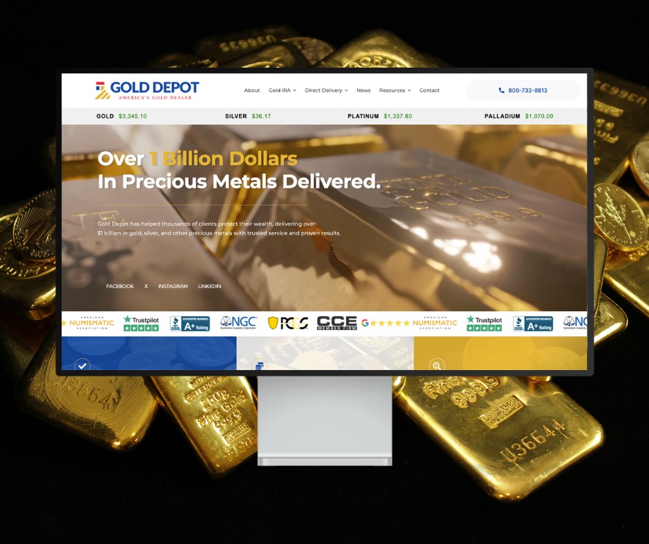 Gold Depot, a gold and sliver wholesaler came to us through a referral from a long-time client in the precious metals industry who knew we could deliver results. Their team needed a full brand refresh and a high-performing website for their Gold IRA business—and we delivered both on a tight timeline.