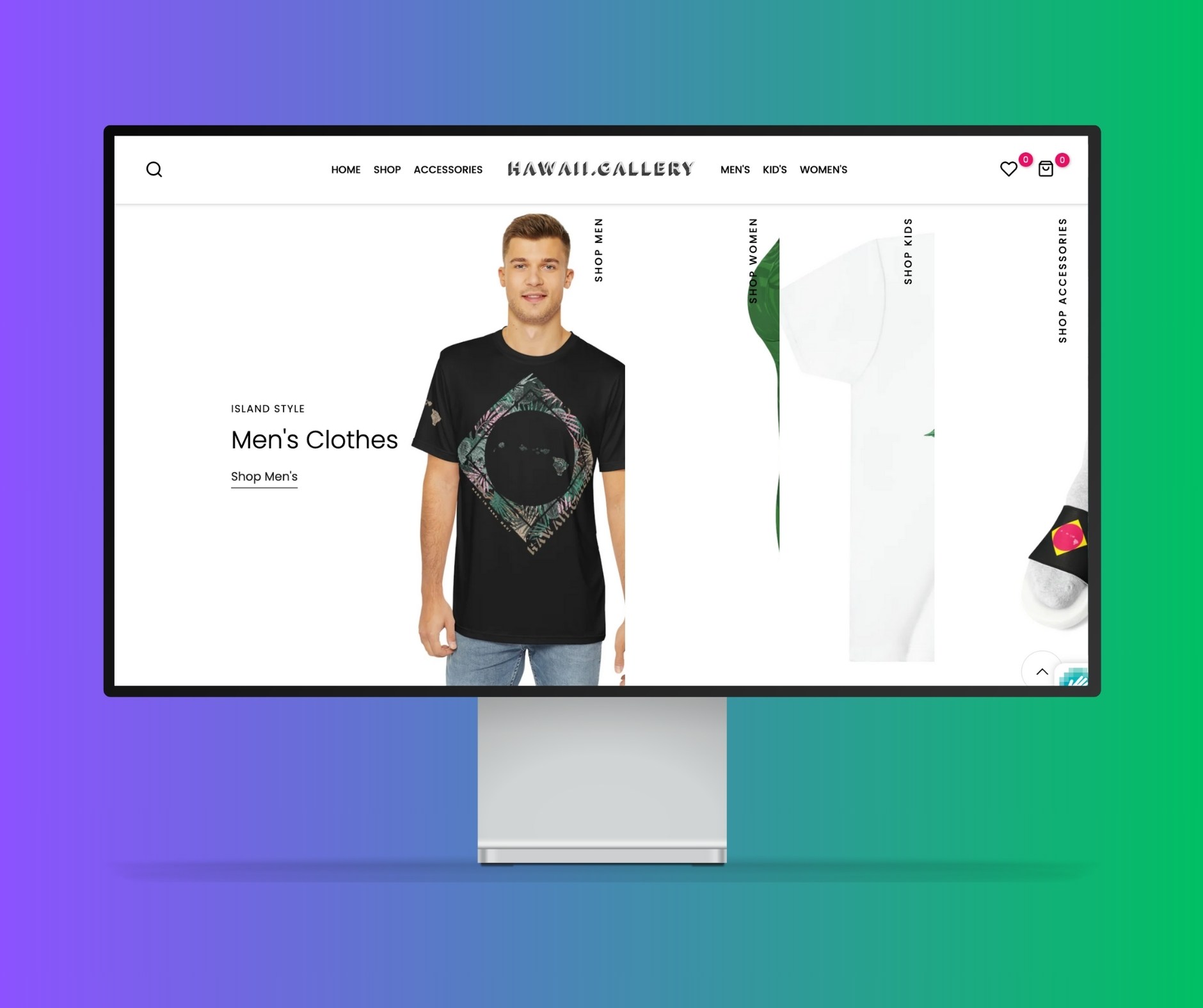 Hawaii.Gallery is our custom-built Shopify store for a local Hawaiian clothing brand based in Maui. The site features bold, island-inspired apparel for men, women, and keiki (kids), as well as unique accessories like slippahs, hats, and custom-designed beach towels. We collaborated with local designers and artists to bring the vibrant essence of Hawaii to a global audience through carefully curated product collections and frequent new drops.