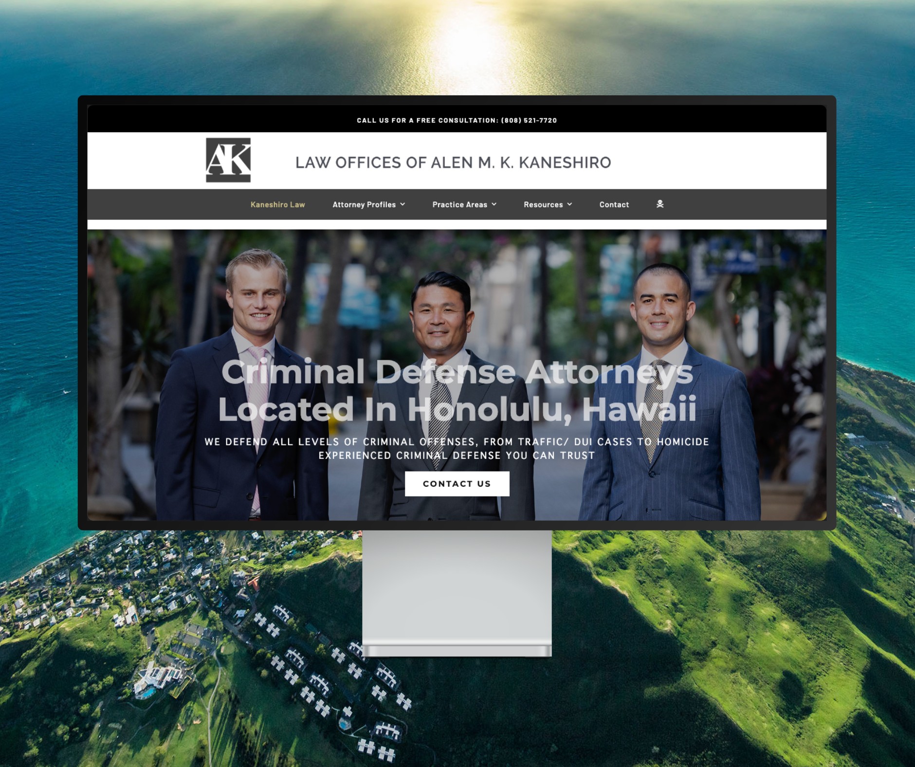 We partnered with Kaneshiro Law, a respected criminal defense firm based in Honolulu, Hawaii, to design a website that reflects both the credibility and personal commitment of attorney Alen M.K. Kaneshiro. Known for his responsive, client-focused legal advocacy across a range of cases — from traffic offenses to serious criminal charges — Alen needed a platform that instilled trust, clearly outlined services, and made it easy for prospective clients to take action.
